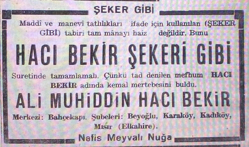 Hacı Bekir Müessesesi, kuşaklar boyunca edinilen ve geliştirilen deneyimlerle şekerleme dünyası ve sanatı üzerine bilgi birikiminin en yüksek noktasına ulaşmıştır.
